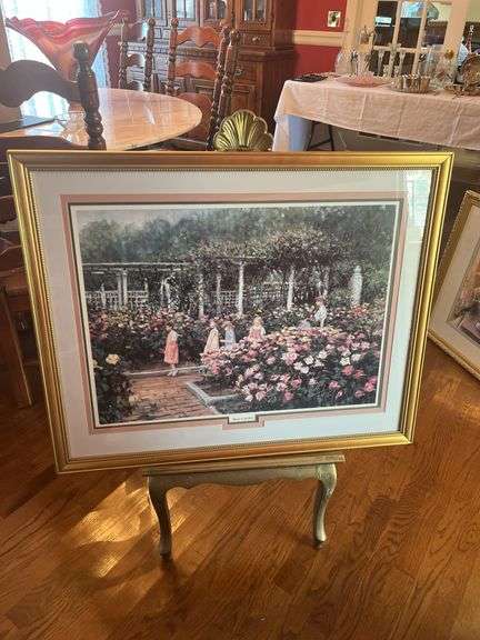 Framed and matted "Rose Garden" print measures 28" x 34.5".