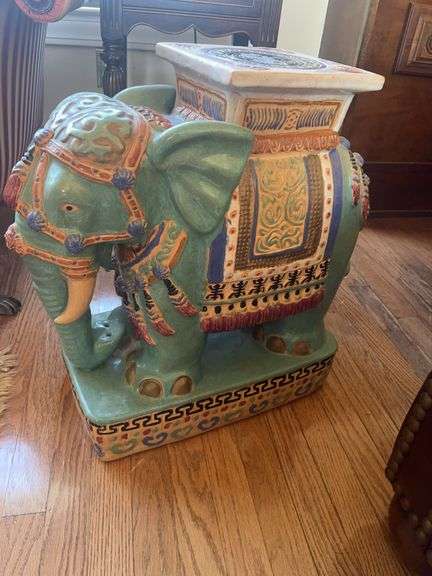 Vintage turquoise elephant garden stool. 21 1/2” h.