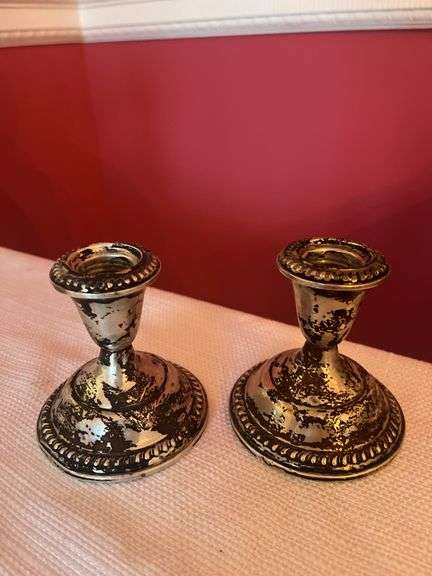Pair of sterling silver candle holders measuring 3" tall