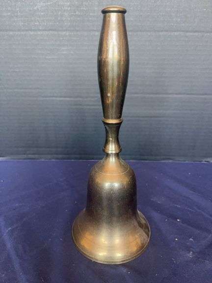 Brass handbell, commonly referred to as a school bell. 11” h.