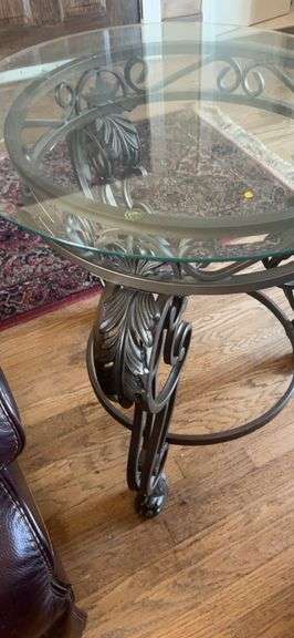 Glass top end table. Exact match to lot # 1086 and goes with lot #1085.
