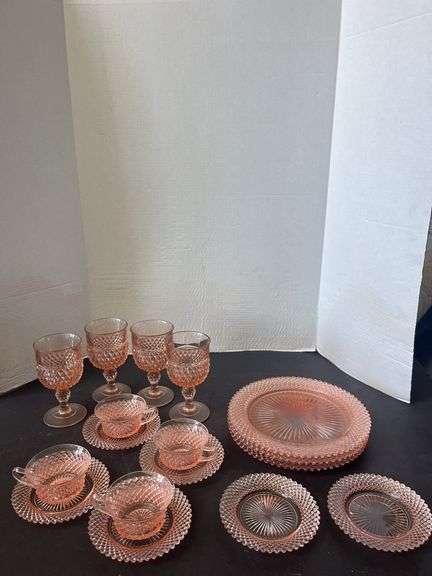 Set of four goblets, four cups and six saucers, and three 10.5" plates