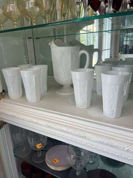 LOT 1549 - Milk Glass Pitcher and Glasses Set
