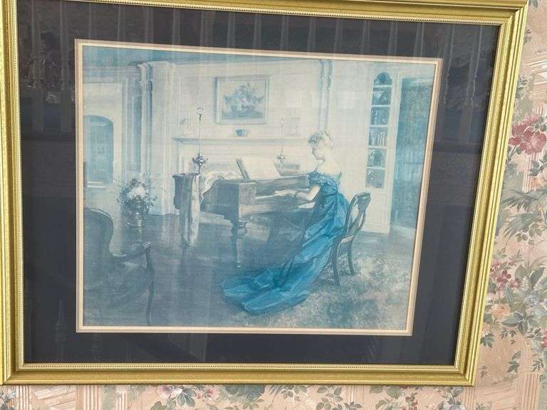 Print of image depicts Pierre-Auguste Renoir's painting, "Woman at the Piano," measuring approximately 44” x 36”