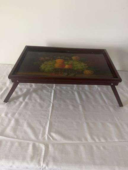 Vintage wooden breakfast/Tray with fruit painted design on top.