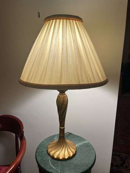 LOT 186 - Gold-Colored Table Lamp with Fabric Shade