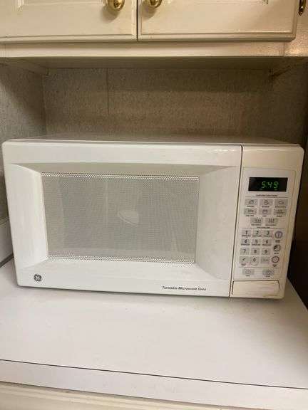 GE Turntable Microwave Oven featuring various custom functions and a digital display.