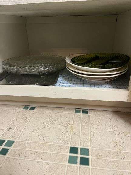 DescriptionThis collection features a variety of plates and platters, including a glass platter with a starburst design, a green divided serving dish, and Corelle and Pfaltzgraff plates. This diverse assortment adds a touch of character to any table setting.